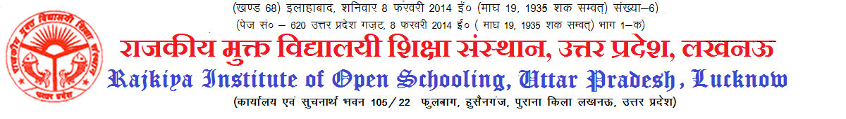 Rajkiya Institute of Open Schooling, Lucknow, Uttar Pardesh was established on 1st December, 1986. Earlier, the Regional Centre, Lucknow was looking after whole of Uttar Pradesh but with the creation of new state of Uttarakhand and expansion and decentralization of various activities, new Regional Centres at Aligarh, Varanasi, Dehradun and Noida were established and districts from the jurisdiction of Regional Centre, Lucknow were transferred to these Regional Centres. Even after such divisions, Regional Centre, Lucknow is still one of the largest Regional Centres in terms of jurisdiction and enrollment of learners.